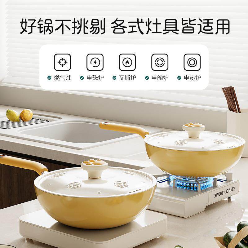 苏泊尔新款陶瓷釉不粘锅高颜值猫爪炒锅多功能炒菜锅通用炉灶平底