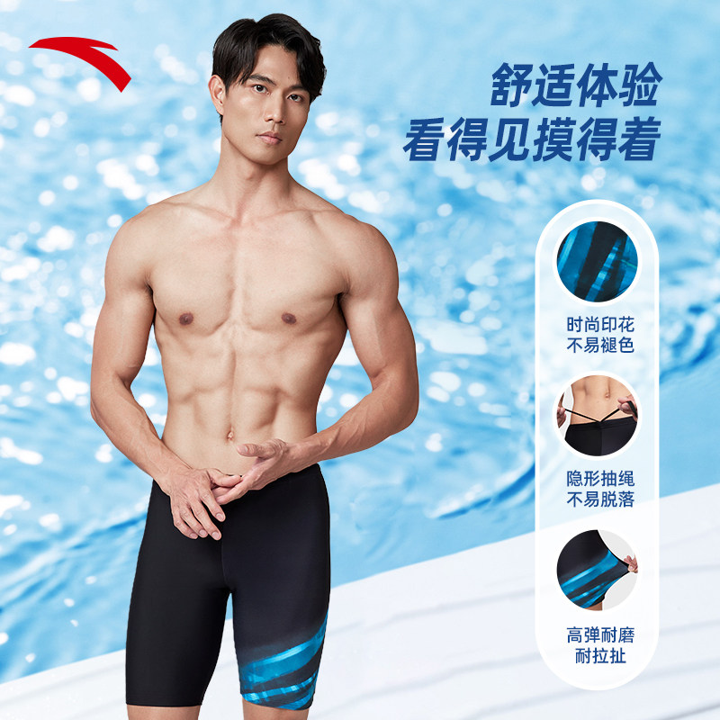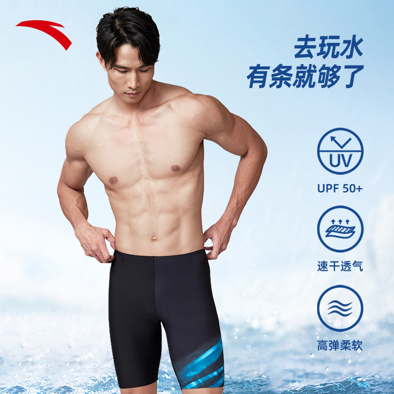 安踏男泳裤中长款专业竞速训练高弹柔软透气耐磨游泳裤1824532402