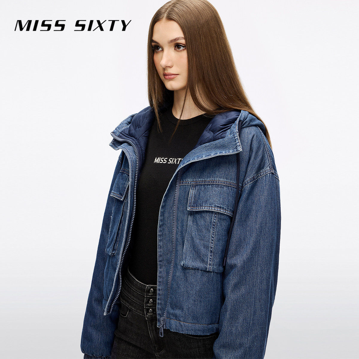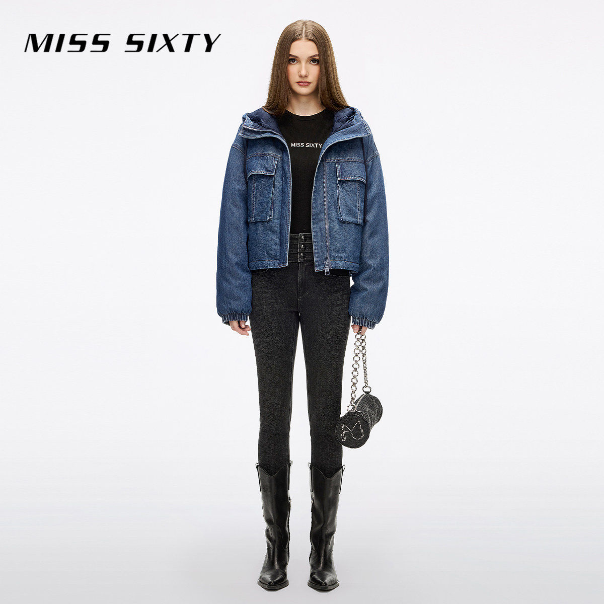 【保暖90鸭绒】Miss Sixty25冬新款牛仔羽绒服连帽工装短款外套