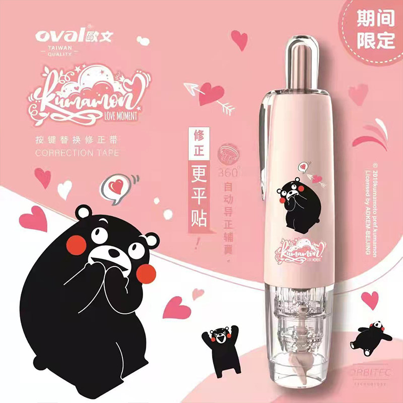 台湾oval欧文熊本熊限定修正带笔式透明涂改带马卡龙色按动式可替换替芯6m学生用不易断改字带可爱猫咪喵早餐