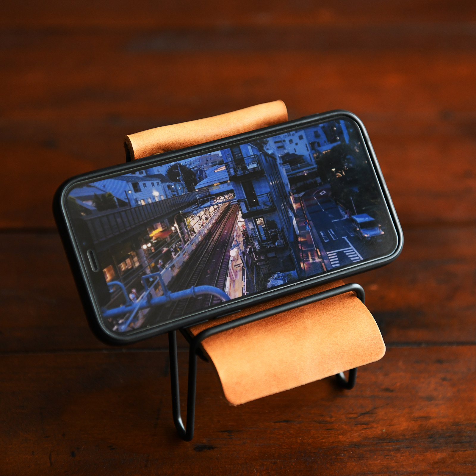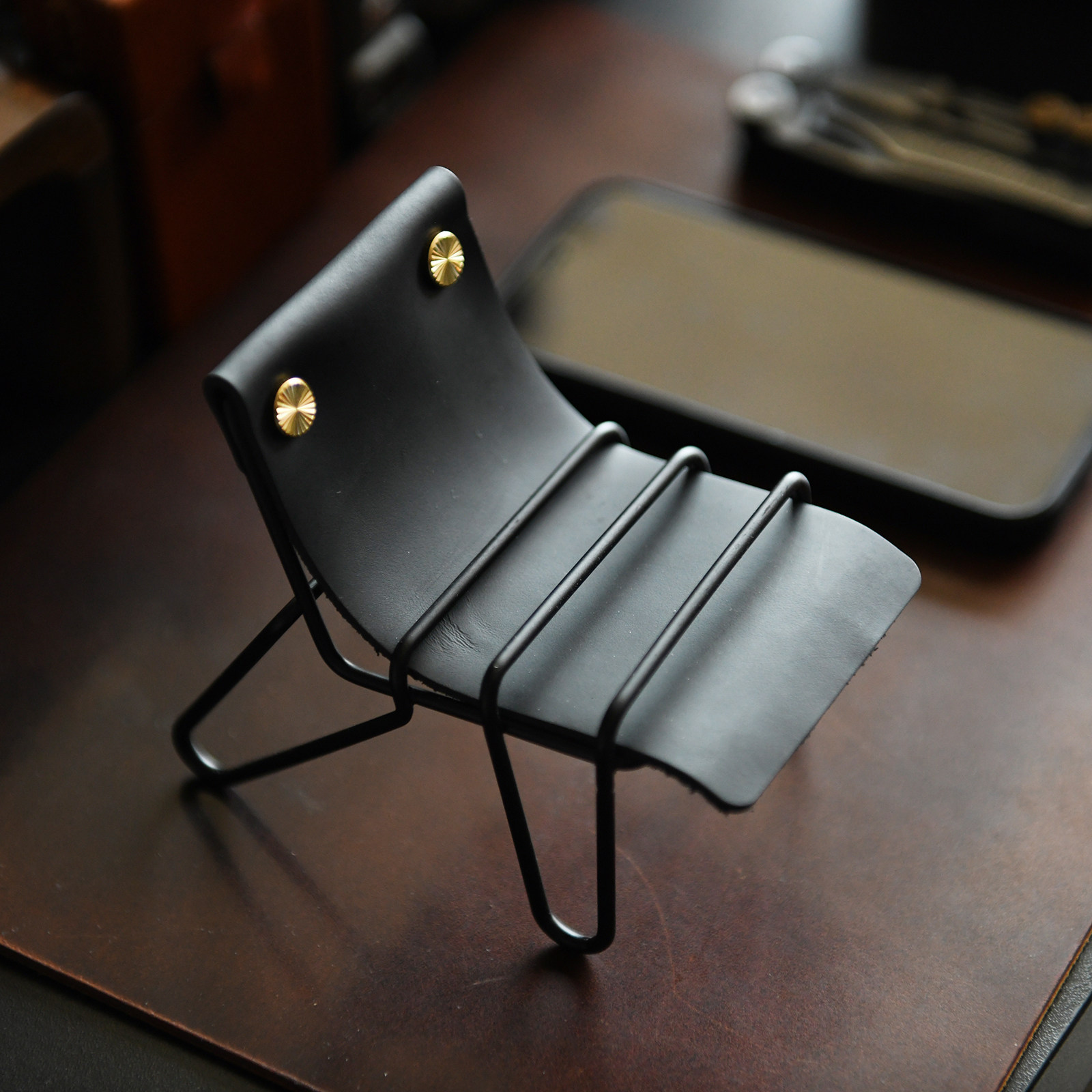 牛皮铁艺手机支架 个性设计桌面真皮趣味摆件手机座椅 创意手机架