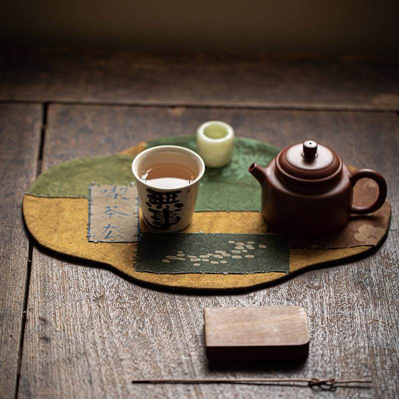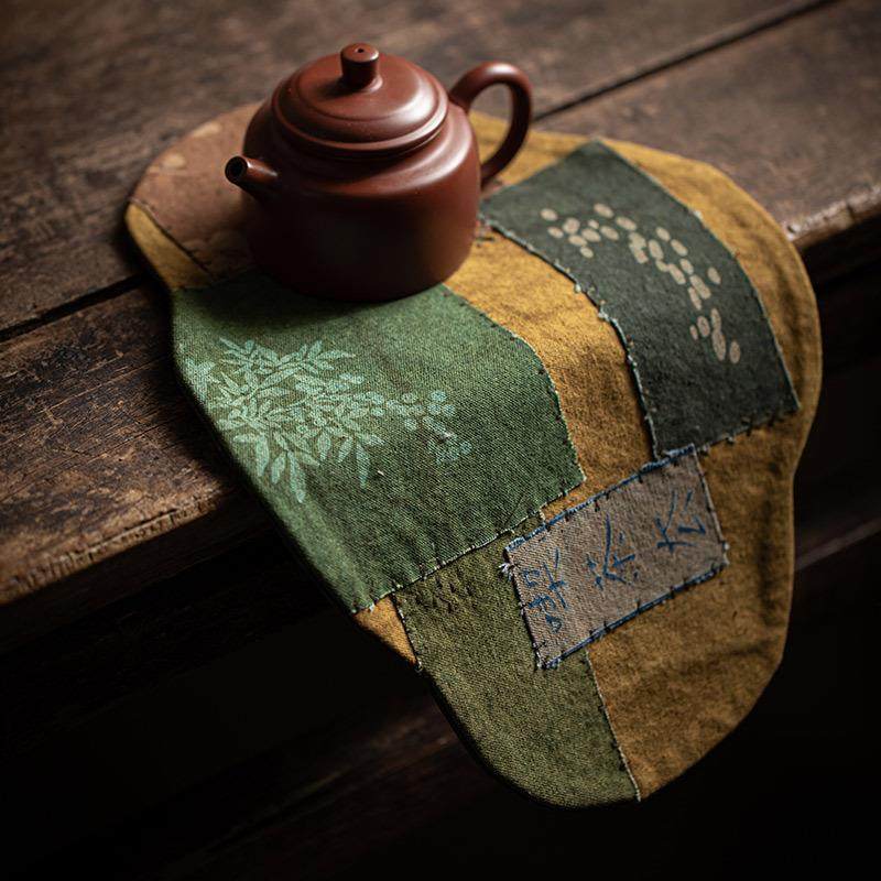 加厚手缝拼布茶席干泡茶台隔热垫禅意扎染刺绣桌旗茶道零配件