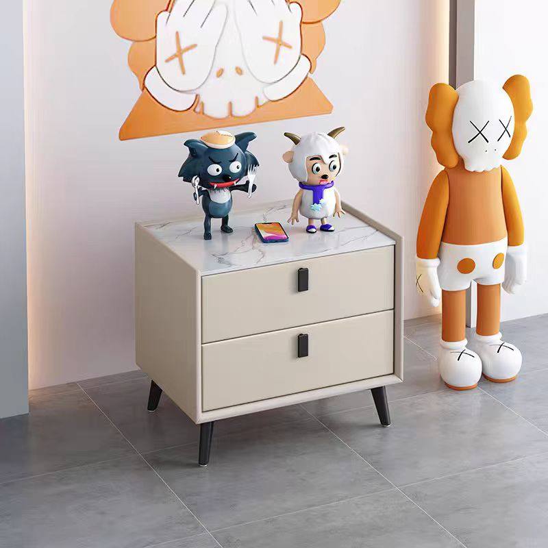 熱简约储物轻奢岩板床头柜实木床边收纳柜整装家用网红小柜子卧室