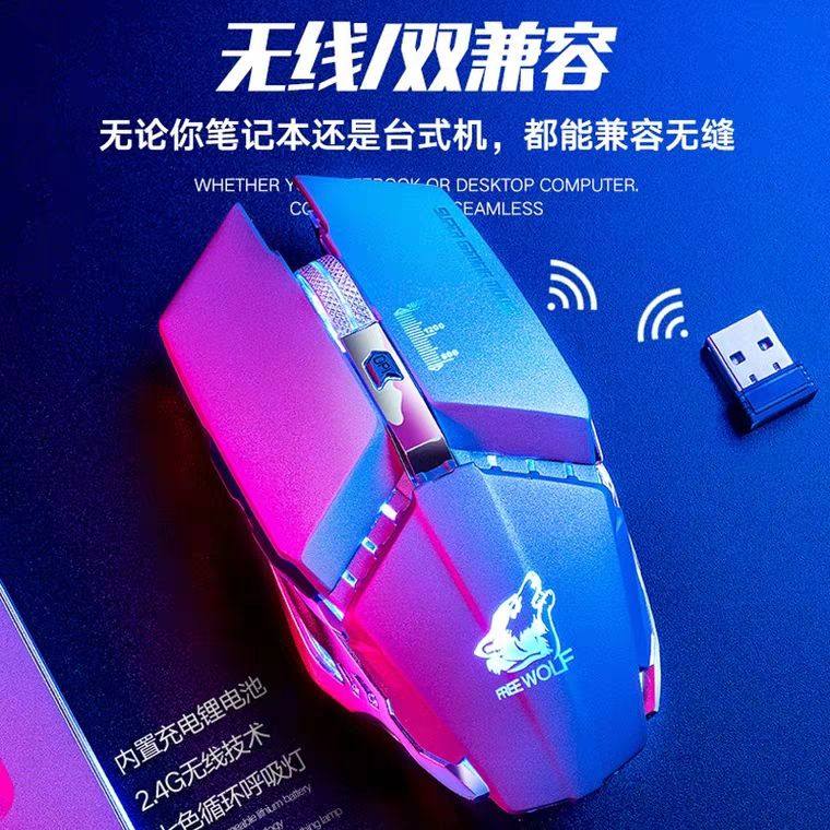 英菲克F9机甲版无线鼠标可充电无声静音电竞游戏笔记本通用typec