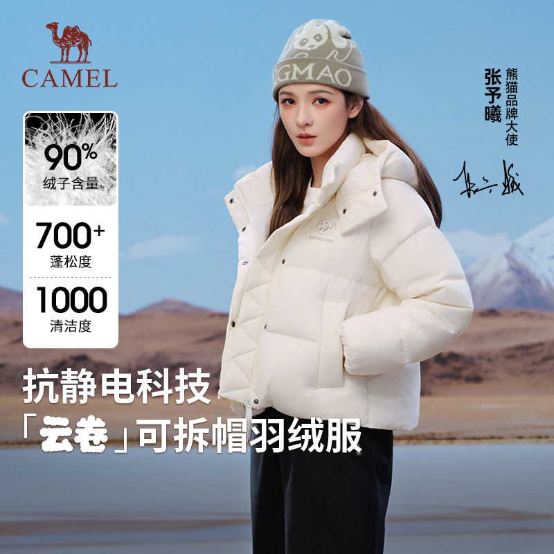 骆驼火山羽绒服女装2025秋冬新款防寒短款加厚保暖防风连帽外套男