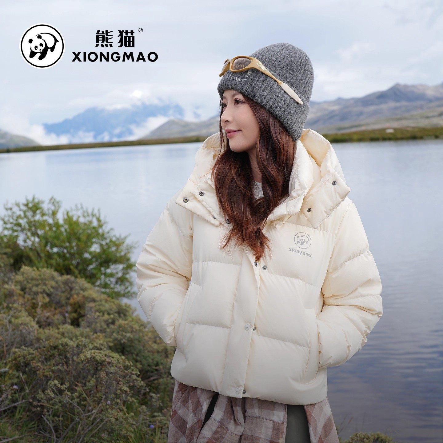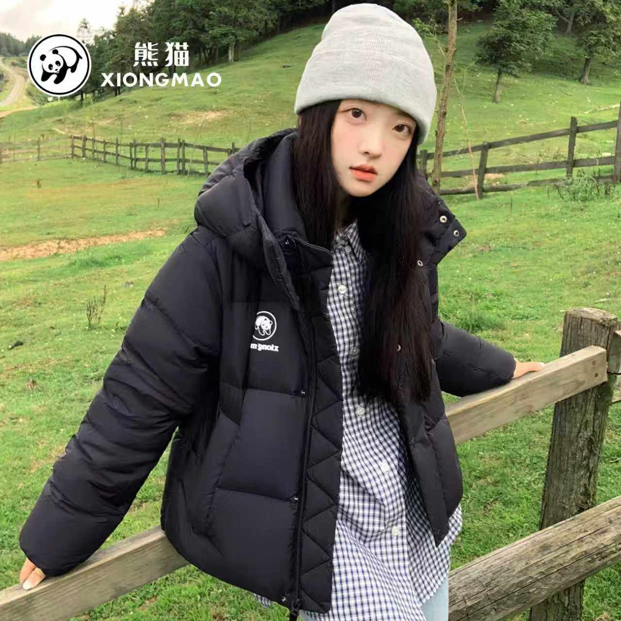 熊猫张予曦同款骆驼白色短款羽绒服女款2025年冬季面包服外套