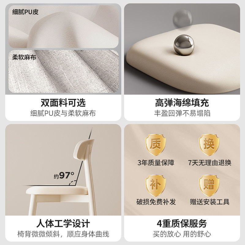 奶油风餐椅简约现代餐桌椅家用靠背餐厅软包椅子咖啡休闲酒店凳子
