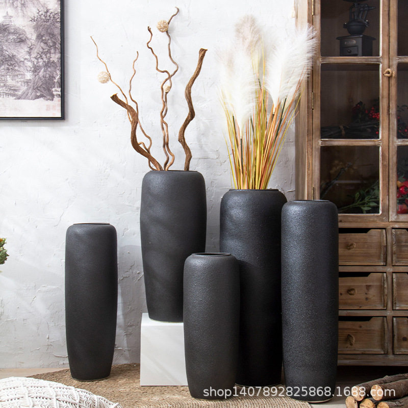 景德镇落地花瓶黑色粗陶罐客厅摆件日式现代简约装饰品电视柜玄关