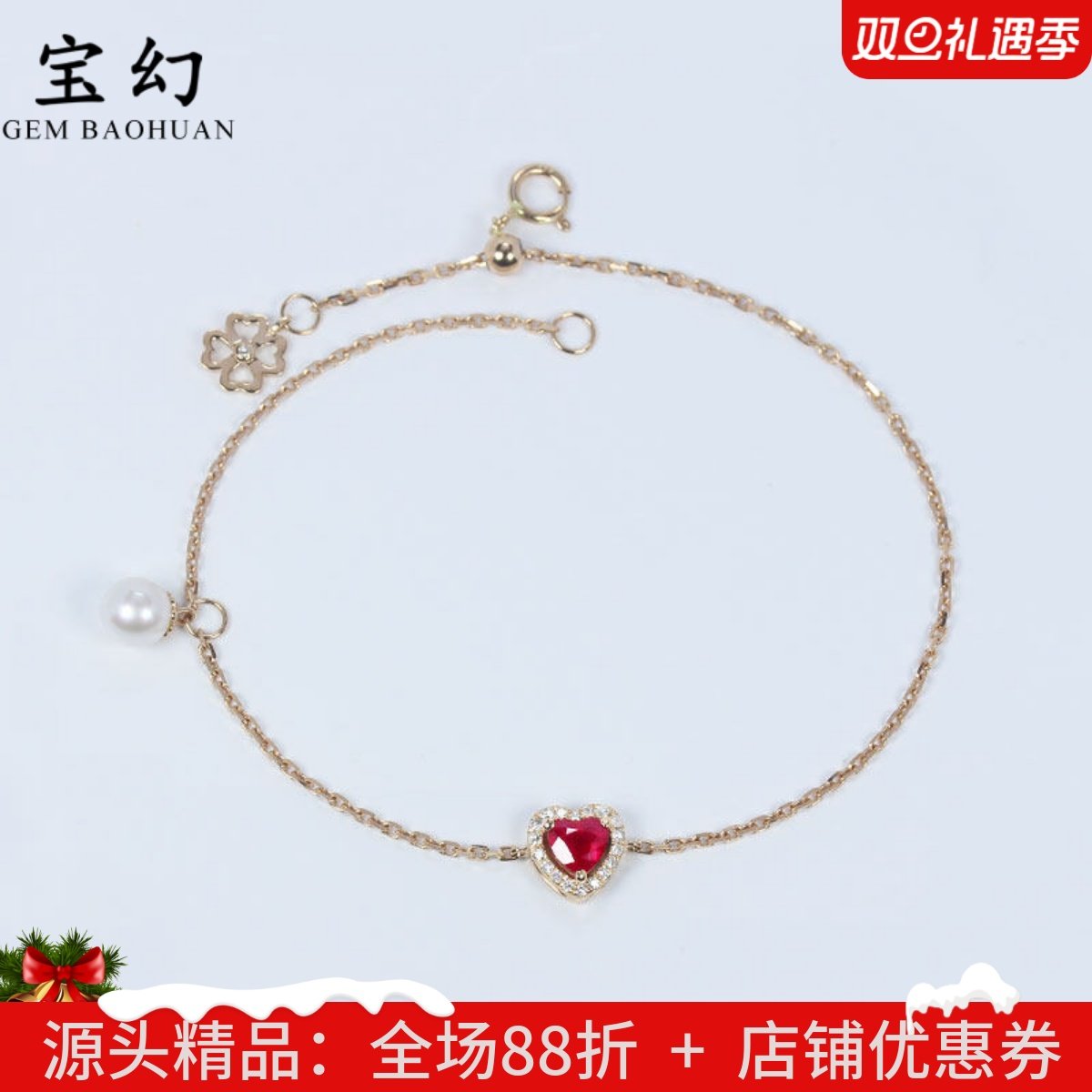 18K玫瑰金心形天然鸽血红宝石可调节手链 天然海水珍珠钻石女款