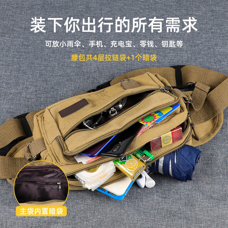 休闲帆布加厚男包多层腰包收钱包大容量斜跨包胸包生意包手机户外