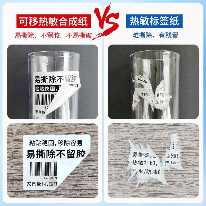 可移除艾利热敏合成纸60X40*30 20 50 70 80 100防水防撕破撕开不留胶FASSON五防热敏纸玻璃板材家具标签纸