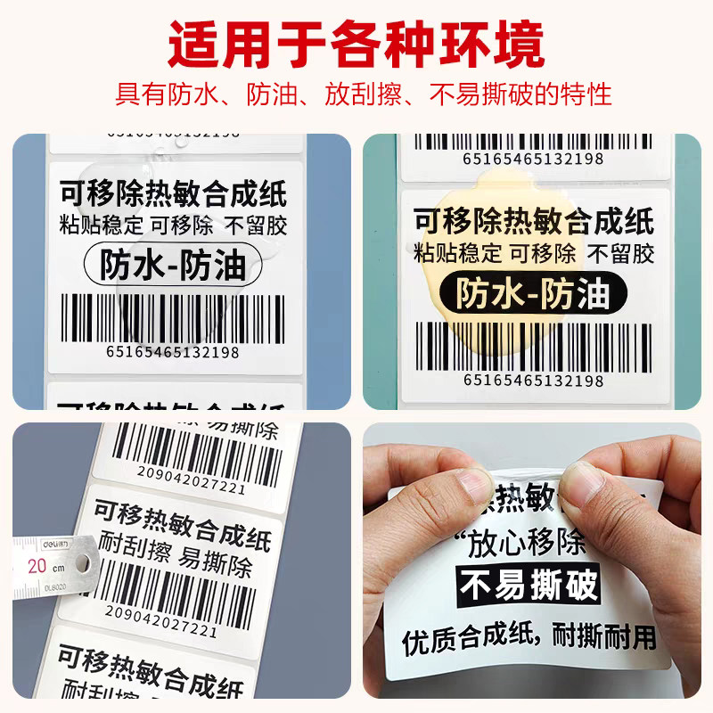 可移不留胶 防水防油防刮防撕 无需碳带打印