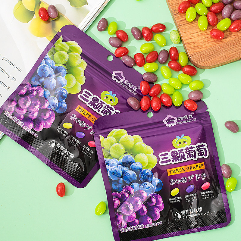 春某井平替款三颗葡萄还原果汁20%蓝莓青提软糖休闲零食混合散装