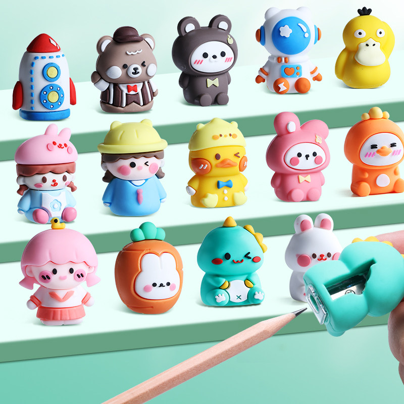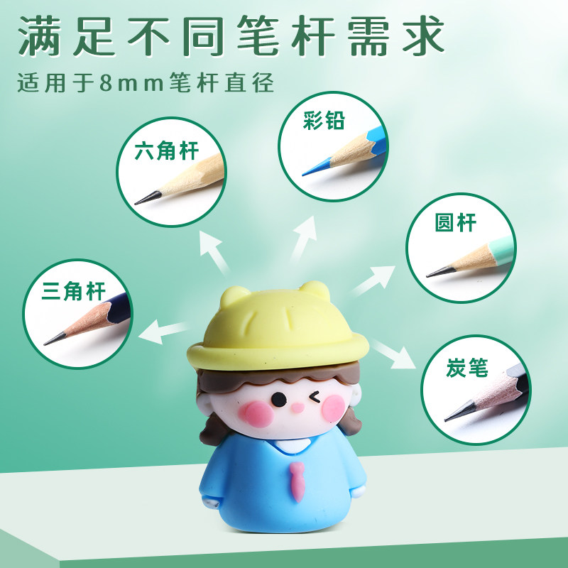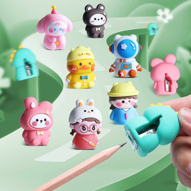 公仔卷笔刀削笔刀卡通可爱儿童小学生小型便携式迷你小巧型手动削笔器小转笔刀铅笔刀幼儿园女孩软胶笔刀削笔