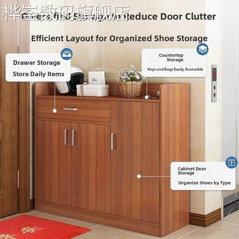 麦比梵家庭入口小公寓简易现代阳台储物柜储物柜实木色简易鞋架摆件饰品垫垫床笠拉车