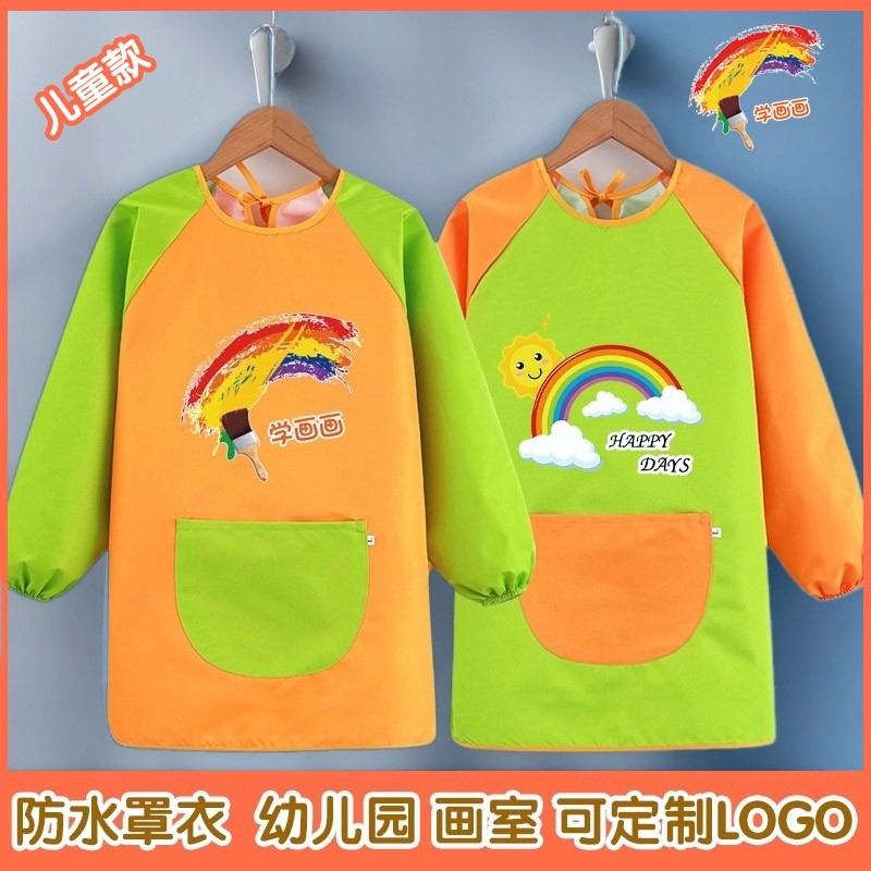 儿童防水罩衣长袖围裙反穿衣画画衣幼儿园吃饭围兜男女孩倒挂防油