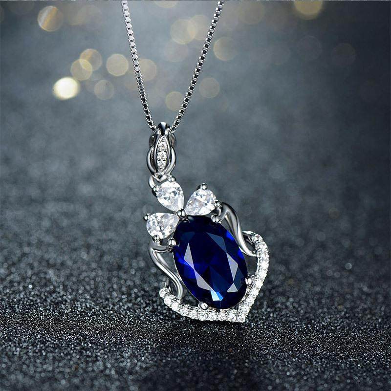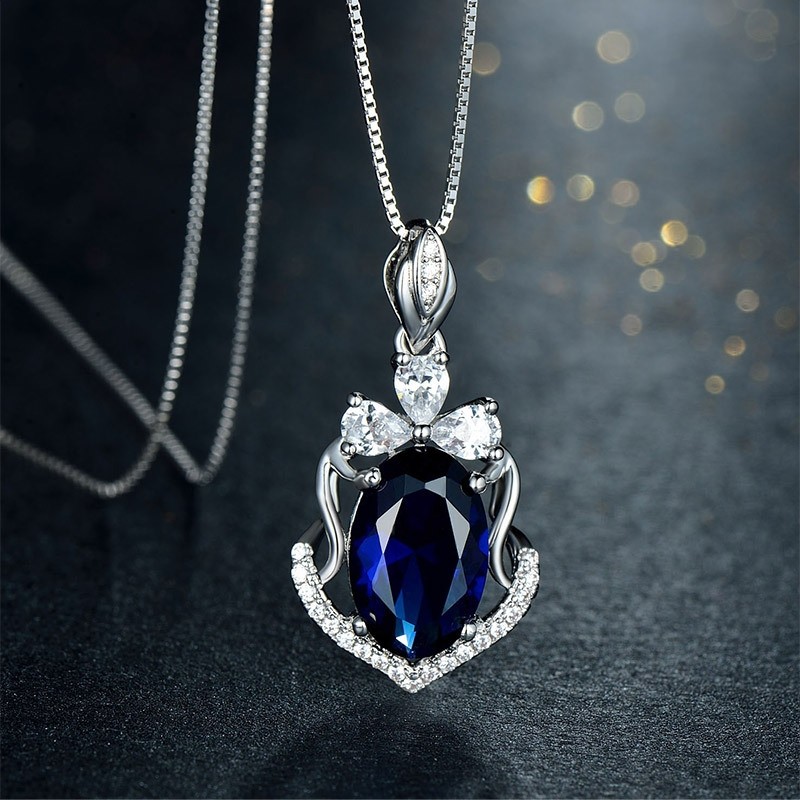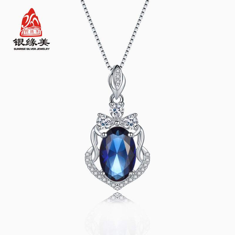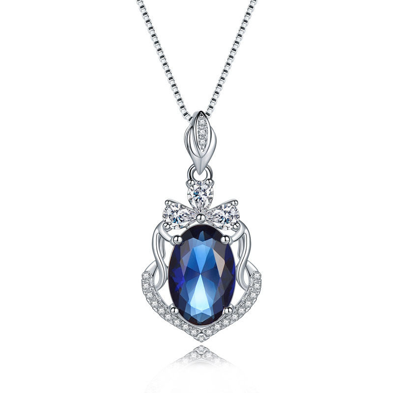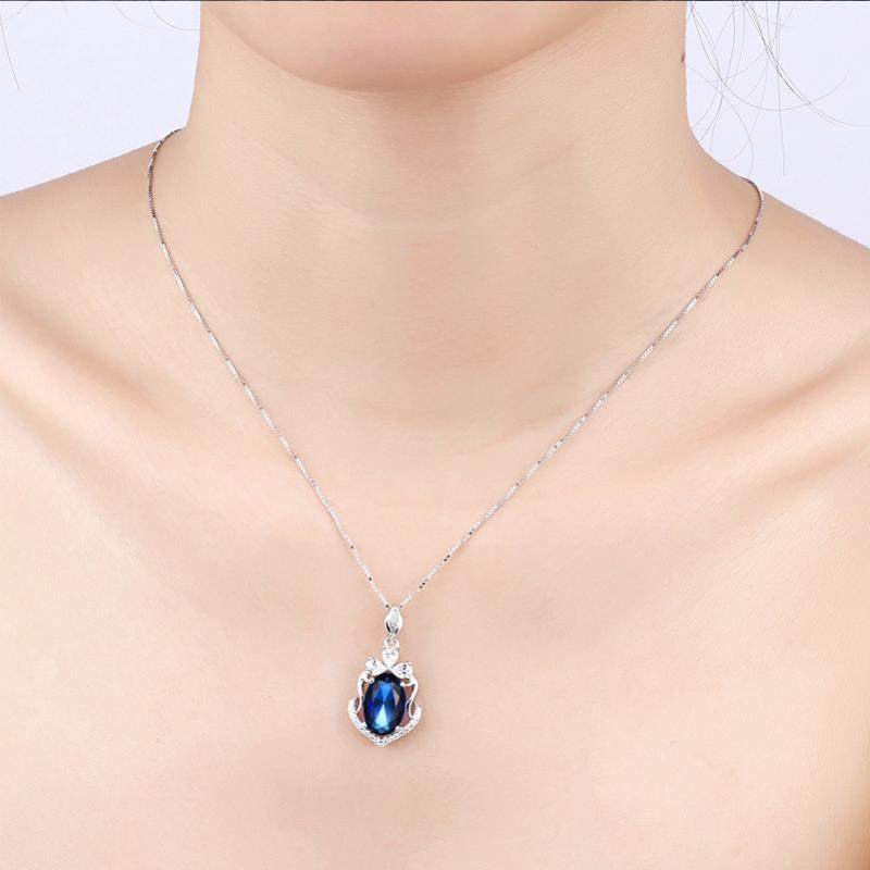跨境S925纯银欧美风项链镶嵌蓝钢玉吊坠厂家项链批发饰品