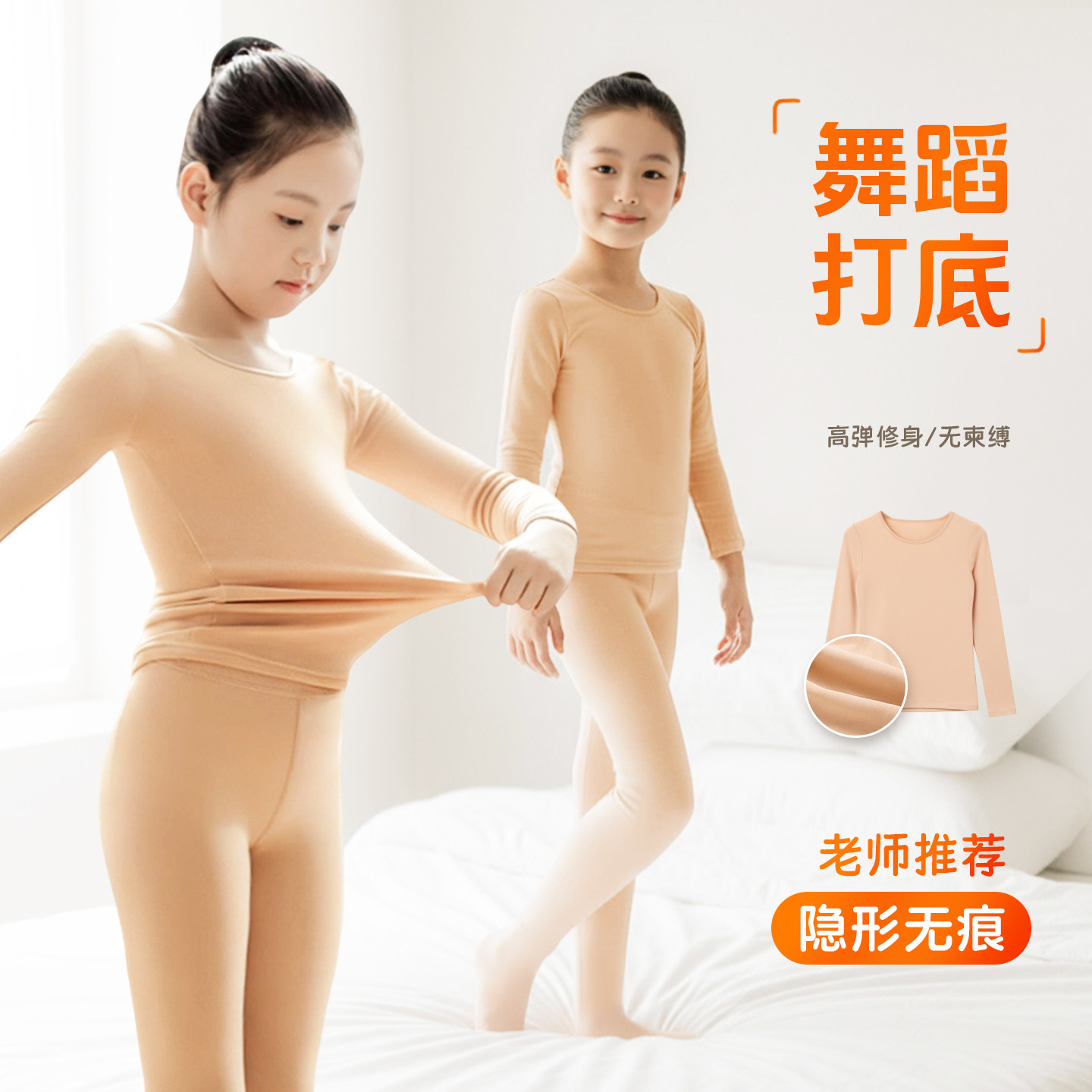 德绒儿童肉色打底衫女童舞蹈衣跳舞保暖衣白色打底衣肤色加绒加厚
