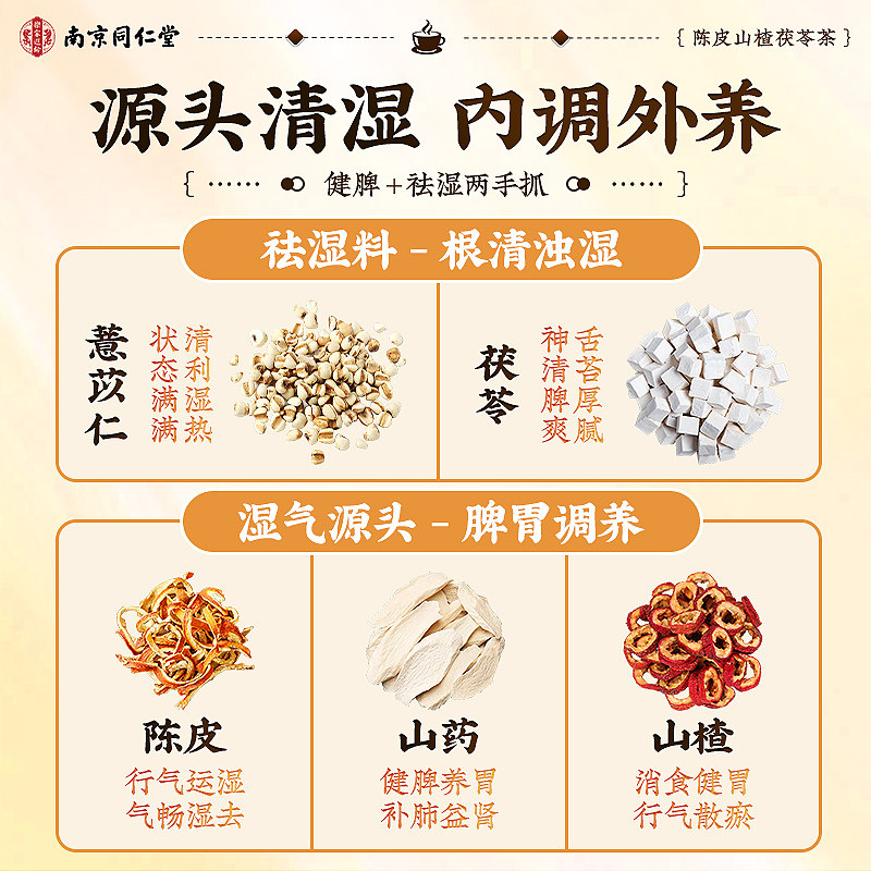 南京同仁堂陈皮茯苓茶山楂薏米湿祛排除去湿气毒养生茶健脾祛湿茶