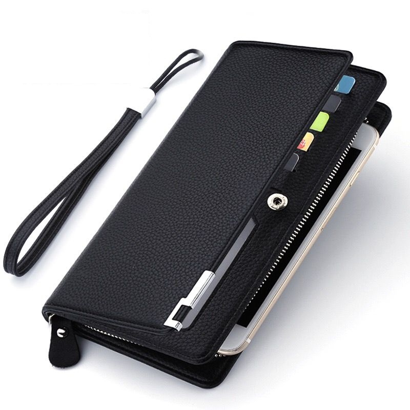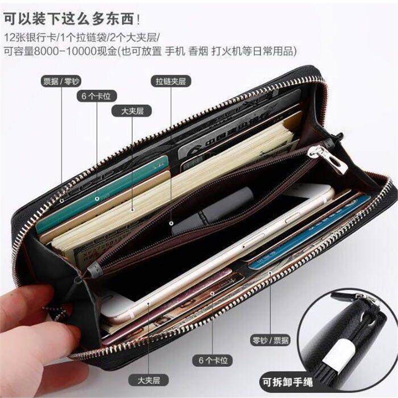 男士长款双拉链钱夹 PU质感横款手拿包 多功能大容量钱包 附袋与