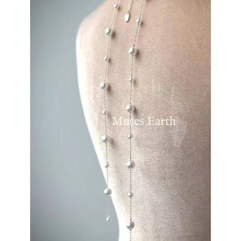 施家真多麻灰色珍珠项链颈链轻奢小众毛衣链配饰女款2025新款爆款