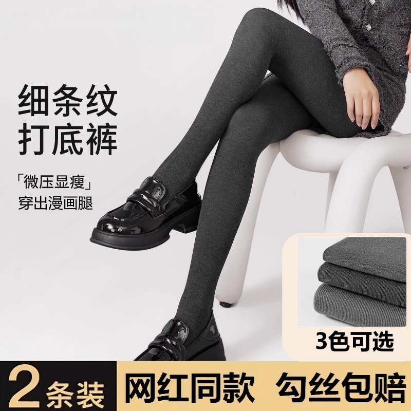 灰色竖条纹打底裤女外穿秋冬季加绒加厚不掉档黑色压力显瘦连裤袜