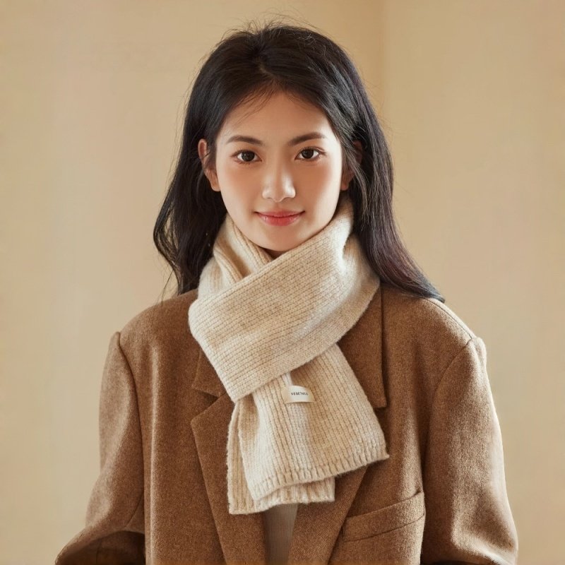 米色围巾女冬季百搭学生可爱针织毛线保暖围脖潮2025新款加厚氛围