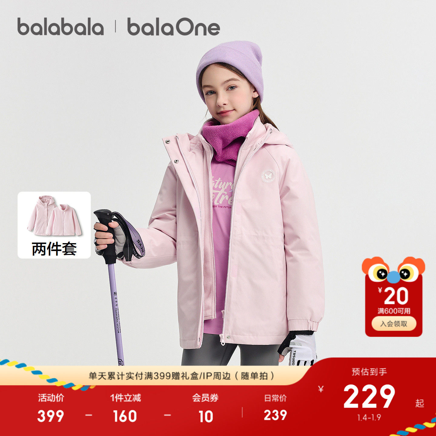 巴拉巴拉童装儿童棉服女童外套两件套新款2026秋冬装防泼水保暖潮