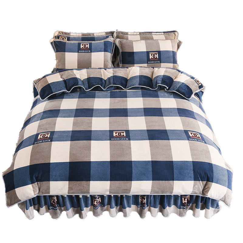 甄品冬季加厚双面珊瑚绒四件套牛奶绒金貂法兰绒床裙被套床上用品