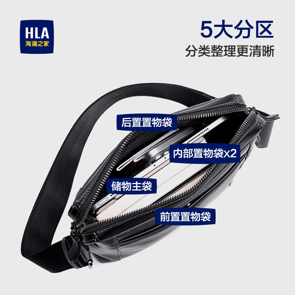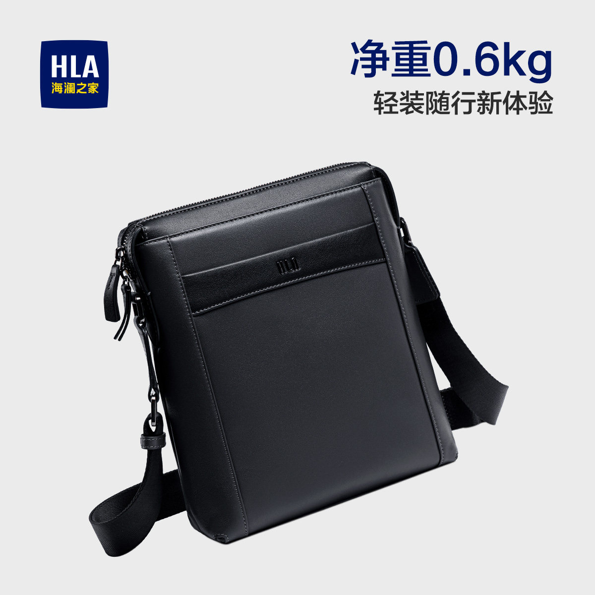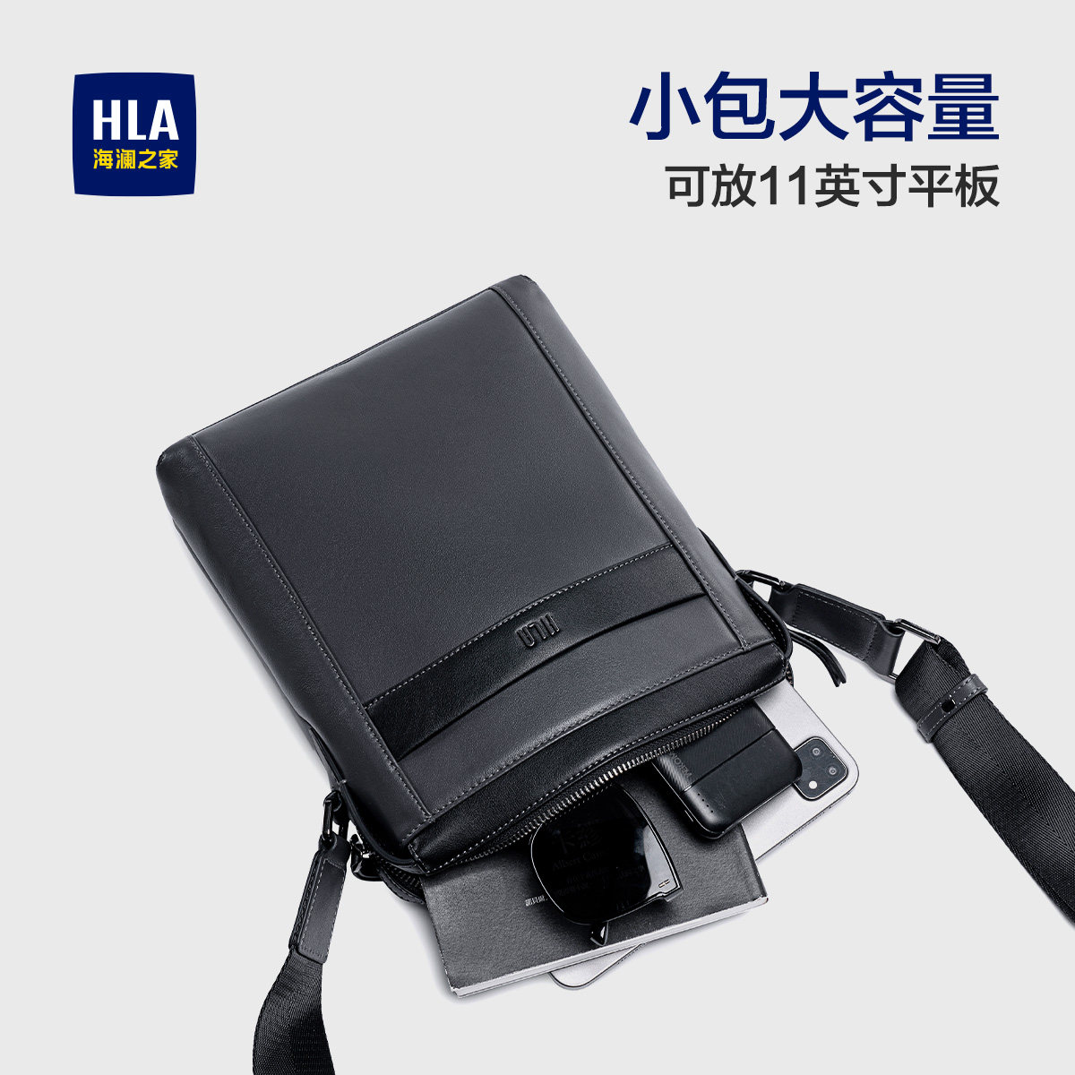 HLA/海澜之家真皮男款斜挎包商务2025新款大容量单肩头层牛皮男包