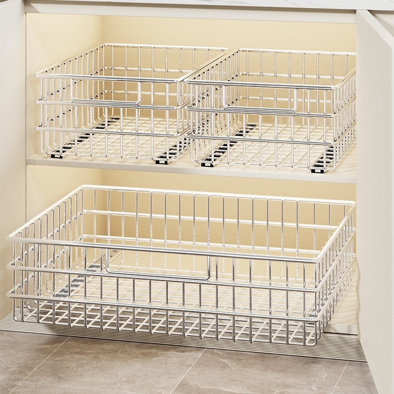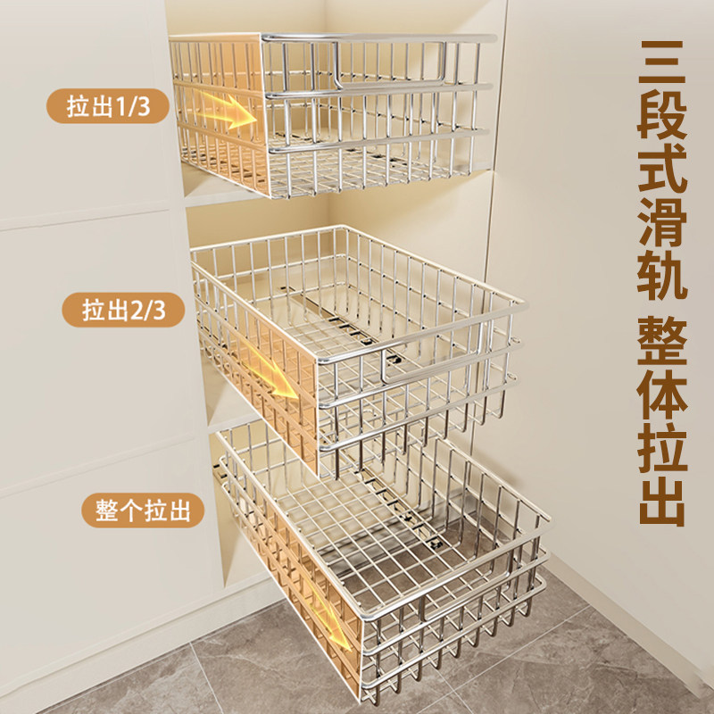 厨房拉篮橱柜内抽拉式置物架深柜抽屉调料分层收纳架家用滑轨碗碟