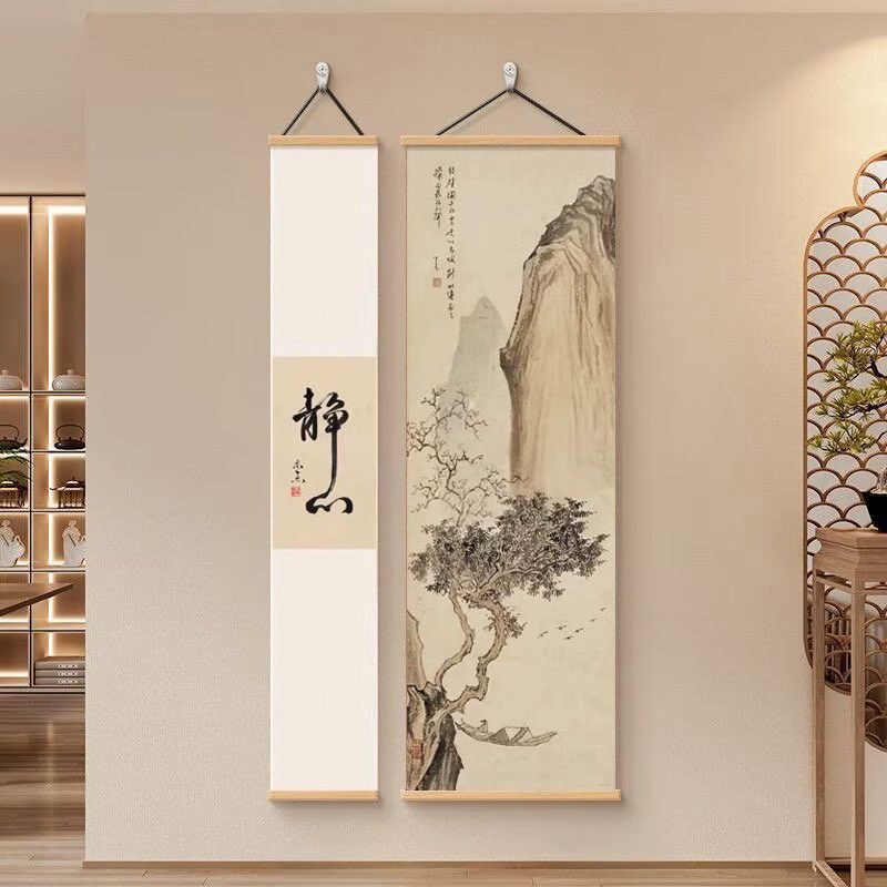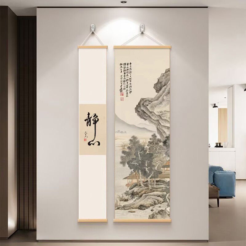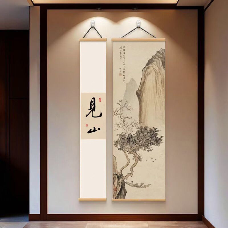 新中式静心山水字画装饰画茶室背景墙挂画书法禅意见山壁画国画
