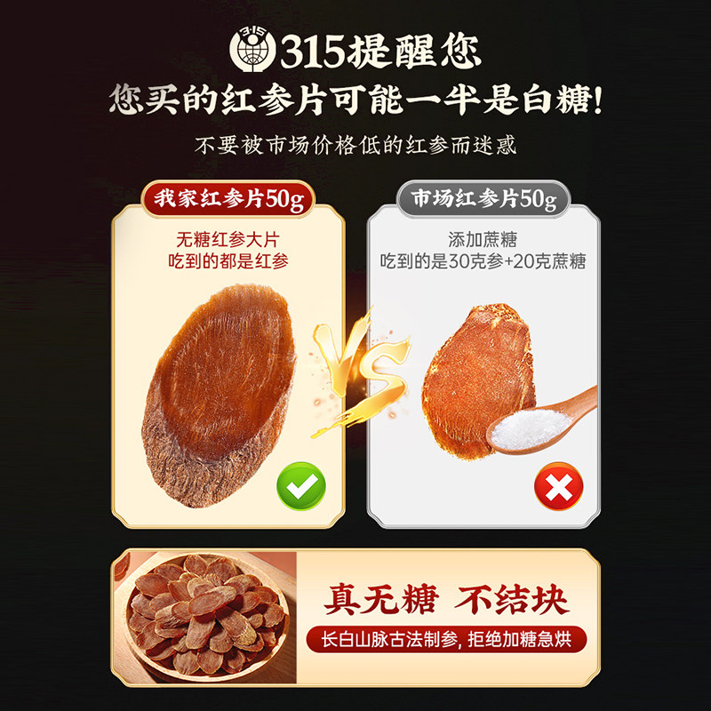 红参片官方旗舰店正品长白山人参特级中药材即食无糖养血切片补气