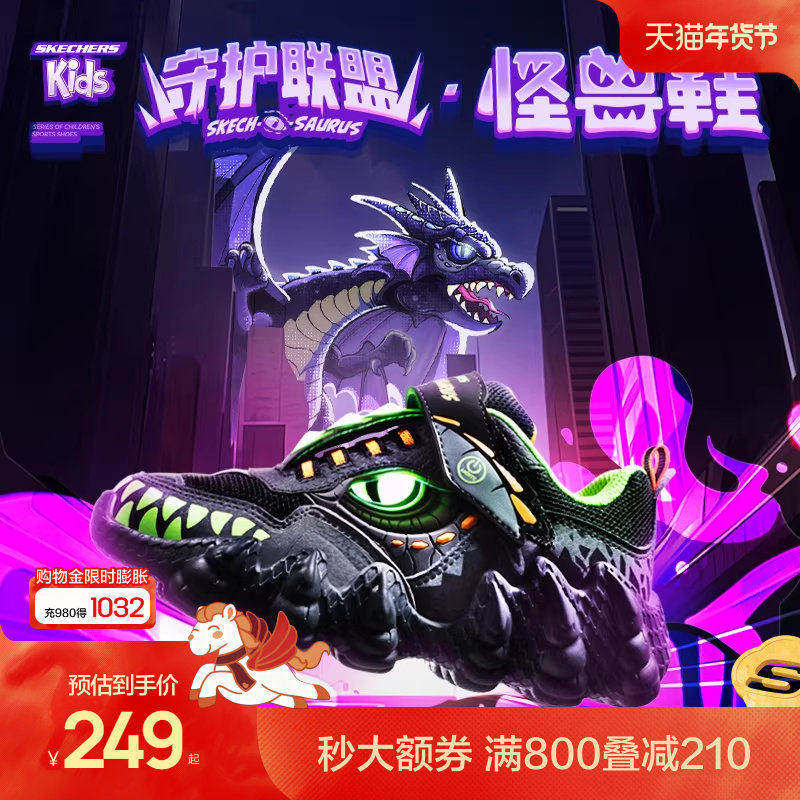 Skechers斯凯奇儿童怪兽鞋秋冬棉鞋运动鞋闪灯男童鞋炫酷亮灯靴子