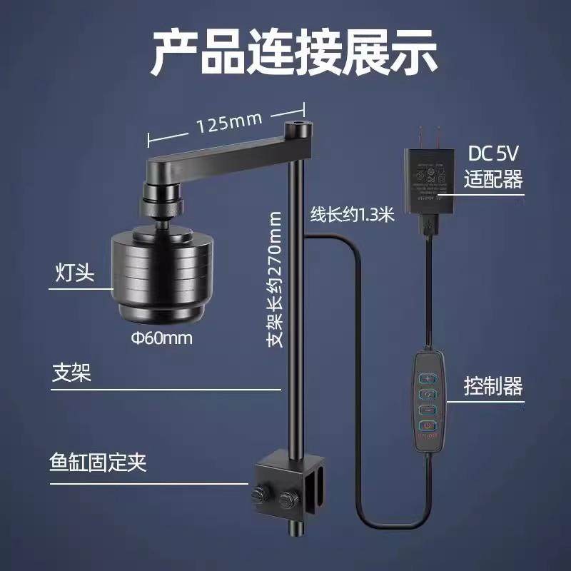 鱼缸灯筒灯爆藻草缸灯造景铝合金小吊灯溪流缸变色射灯水草小夜灯