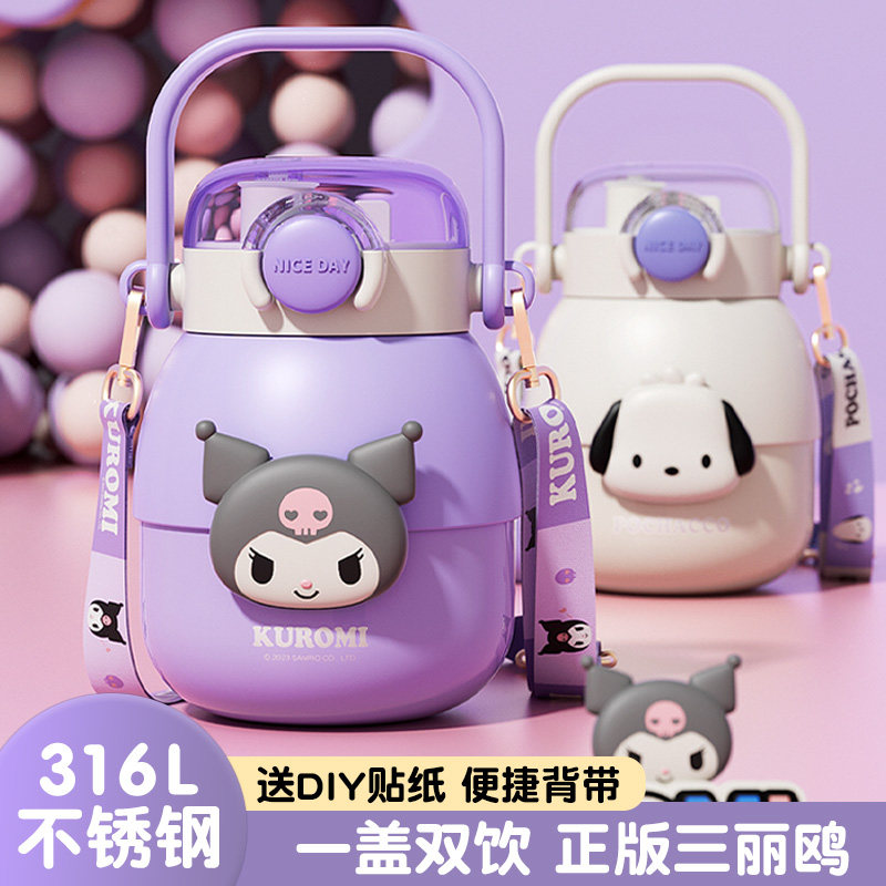 三丽鸥库洛米儿童保温杯女孩吸管水杯子学生上学专用水壶2025新款