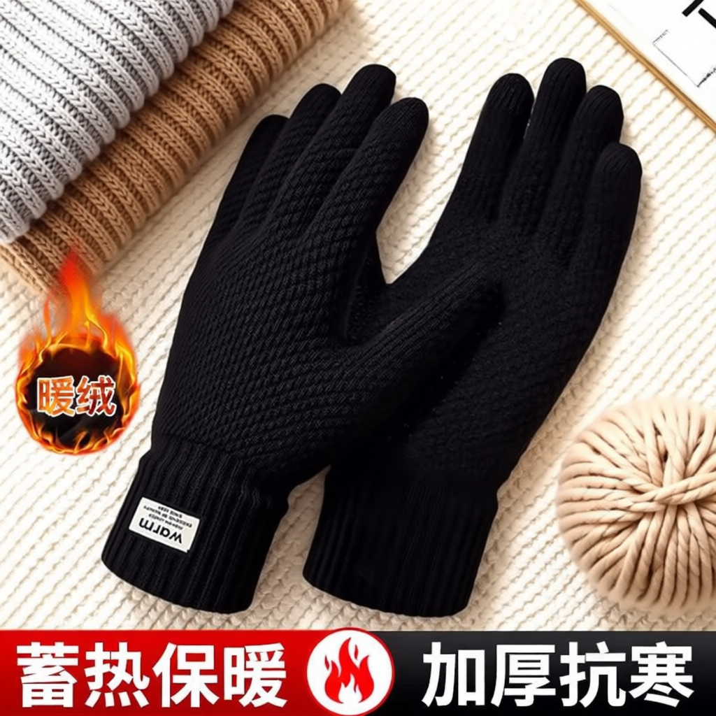 可触屏棉手套男士冬季保暖加绒加厚毛线针织骑行男女同款防寒手套