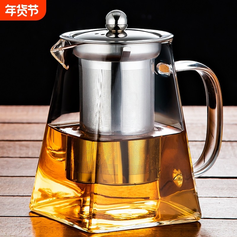 玻璃泡茶壶家用花茶水壶耐高温加厚耐热过滤水壶煮茶壶四方冲茶壶