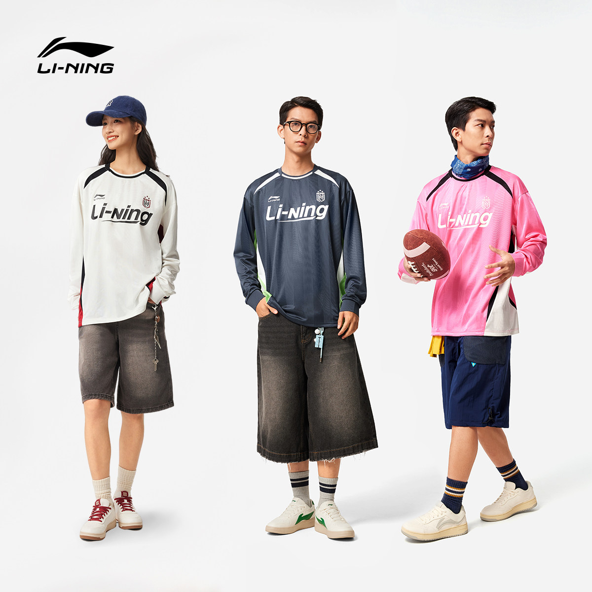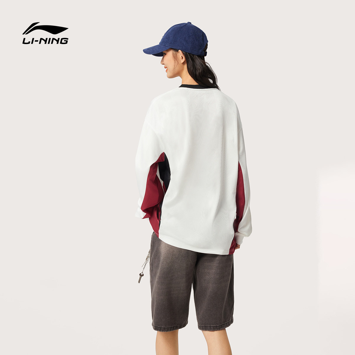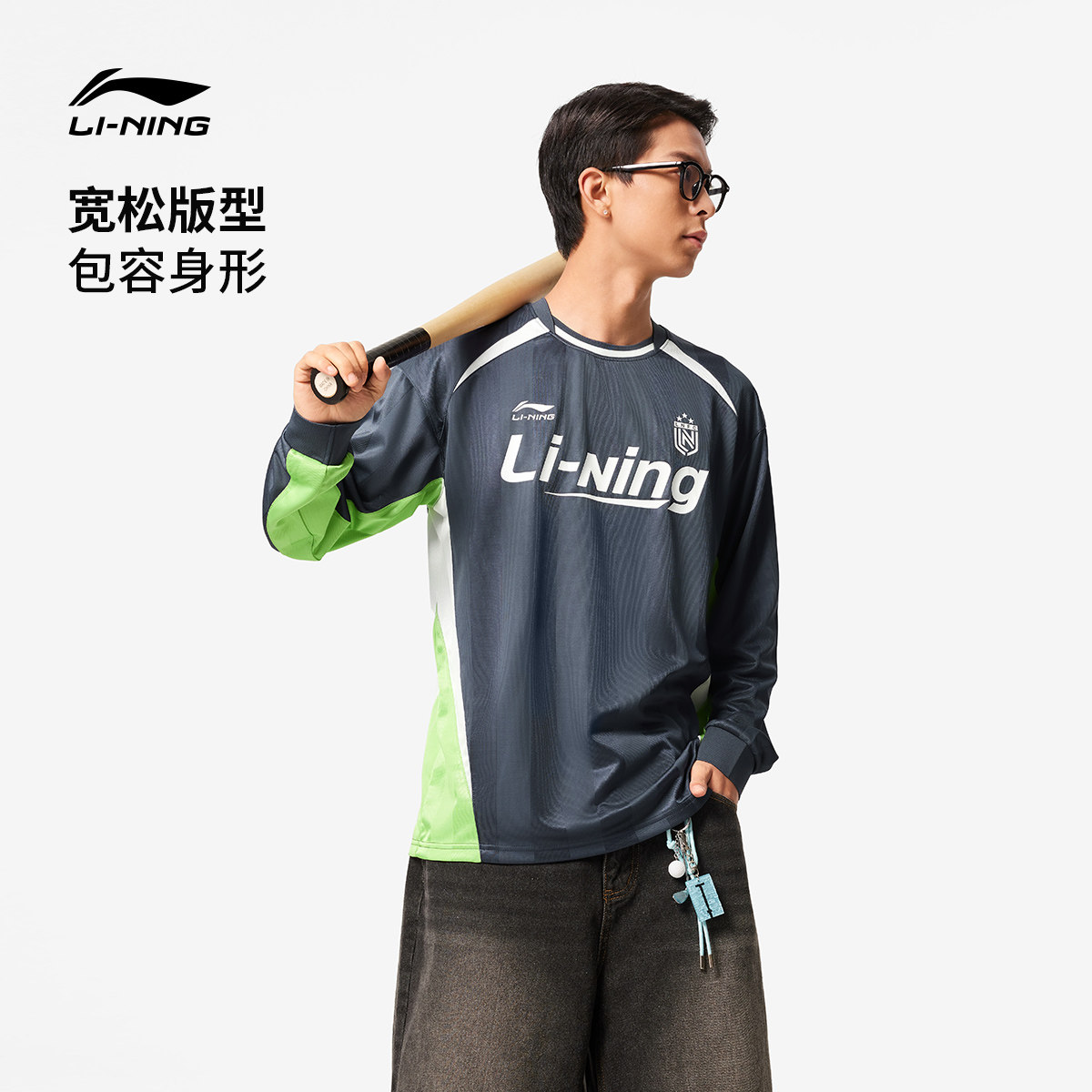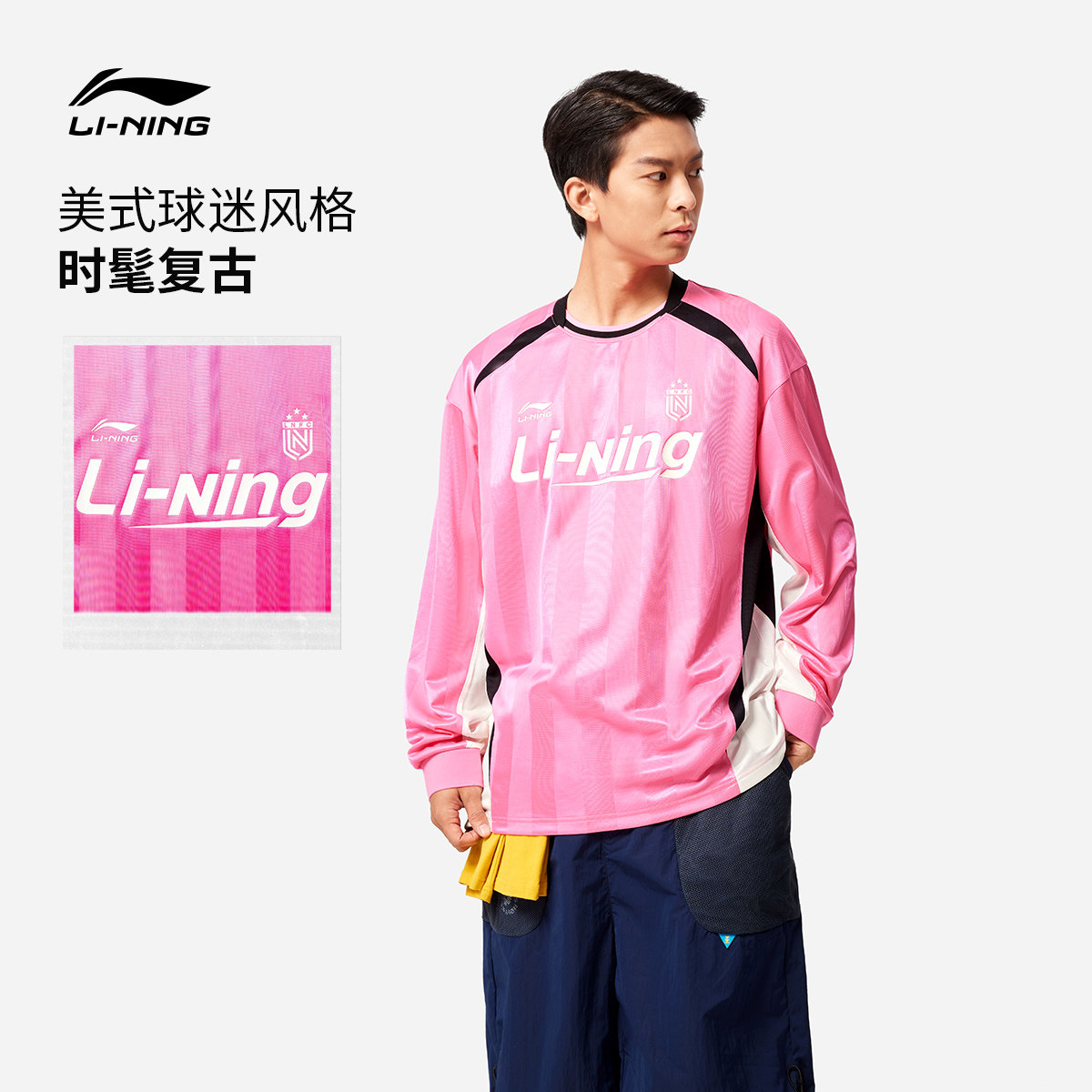 李宁长袖T恤男士官方新款情侣宽松上衣美式薄款卫衣圆领运动服女