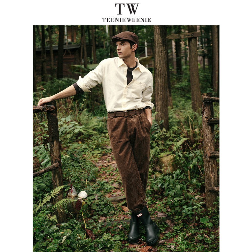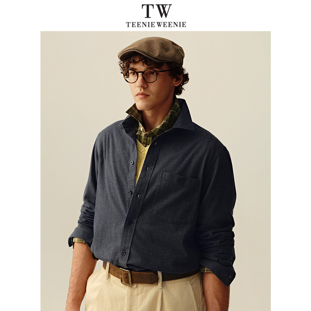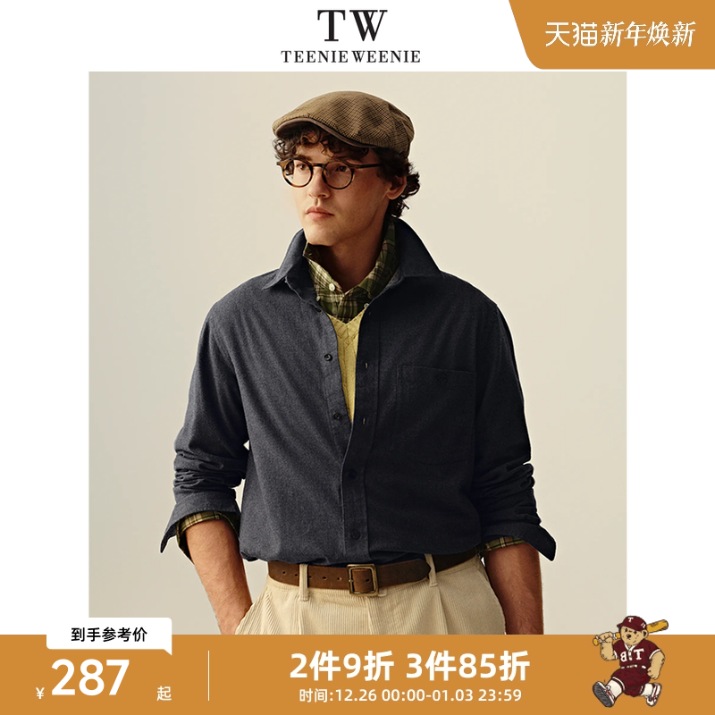 Teenie Weenie小熊男装简约通勤小熊头刺绣舒适日常衬衫