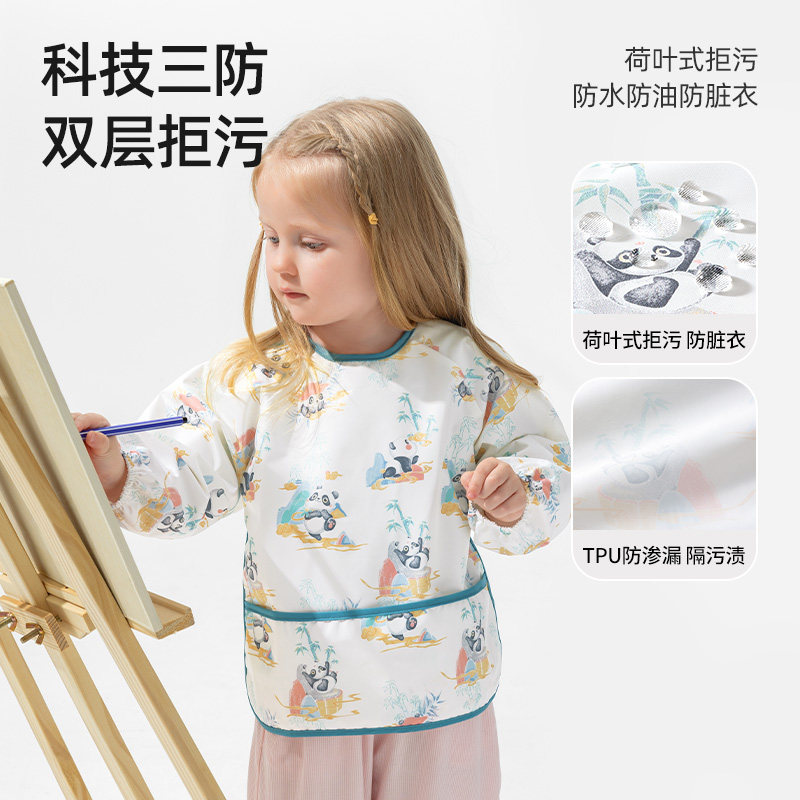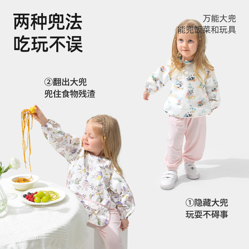 贝肽斯儿童吃饭罩衣宝宝围兜围裙春季婴儿辅食饭兜反穿衣防水防污