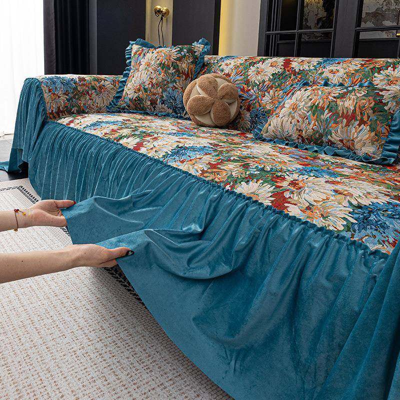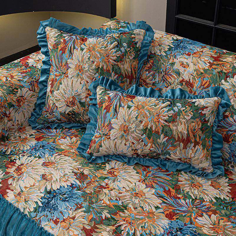 法式田园风沙发盖巾四季通用大裙摆轻奢小碎花油画沙发套罩全盖巾