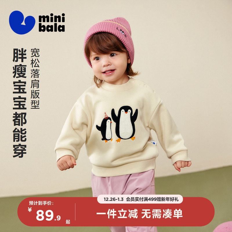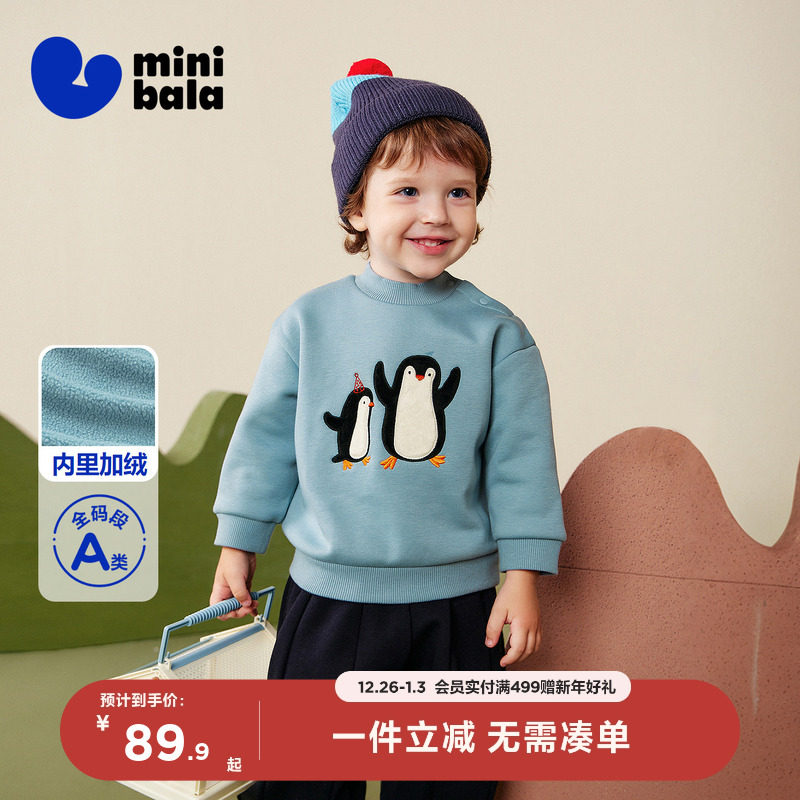 迷你巴拉巴拉男女童宝宝卫衣2025冬新品内里加绒柔软亲肤保暖上衣