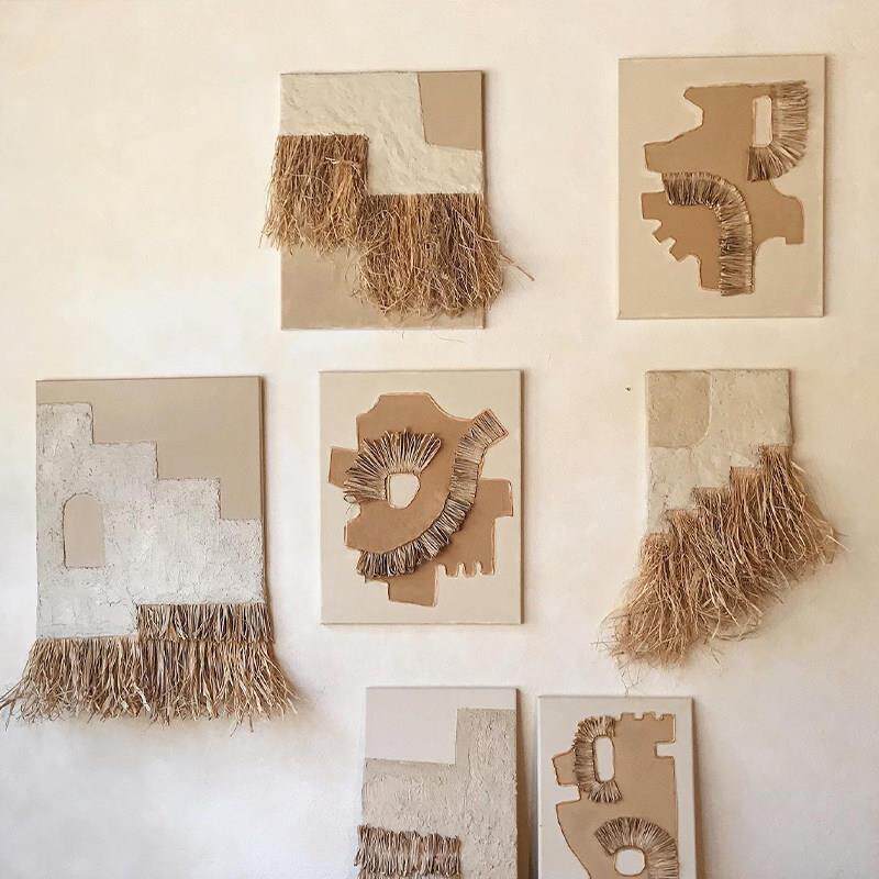 手工墙饰日式侘寂风草编民宿挂画墙面立柱复古装饰画原生态壁饰