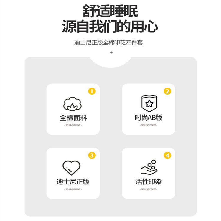 迪士尼卡通米奇纯棉四件套100全棉可爱儿童男孩被套床单笠三件套4