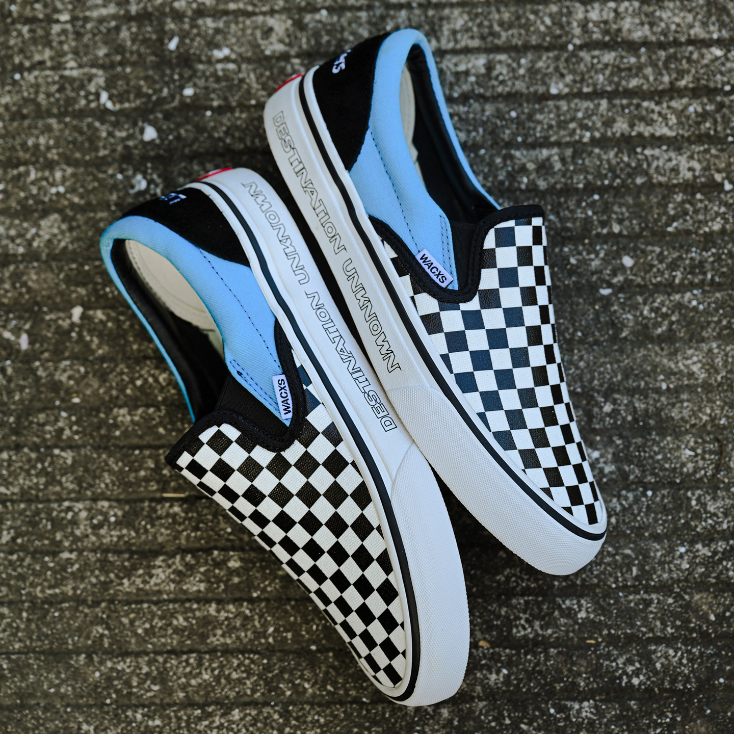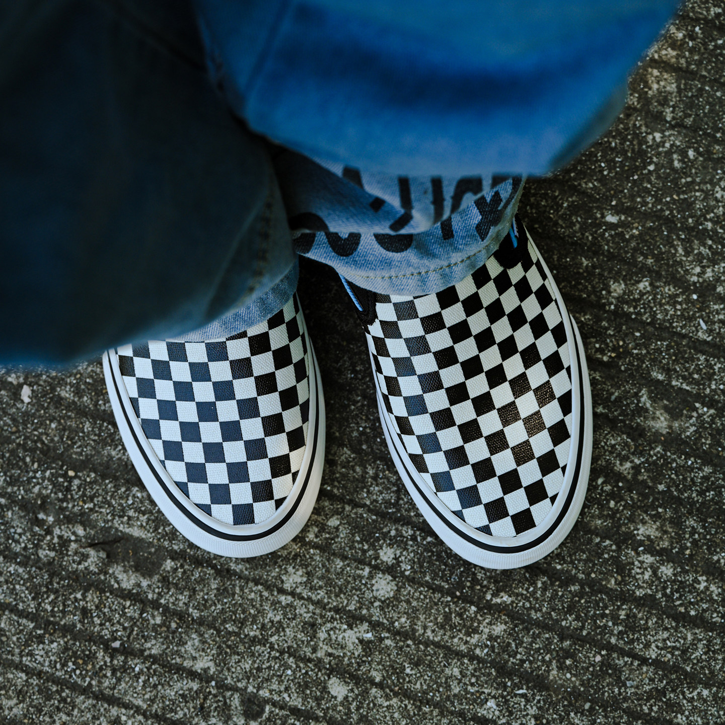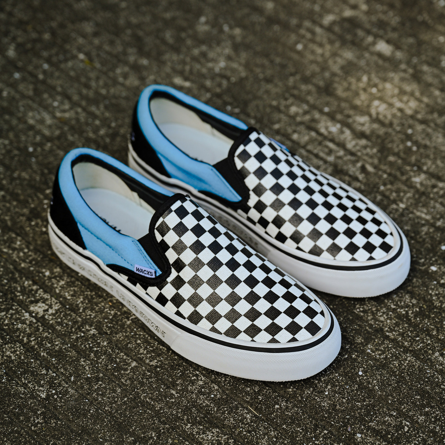 夏季棋盘格印花帆布鞋美式蓝黑轻便一脚蹬男女复古休闲板鞋格子