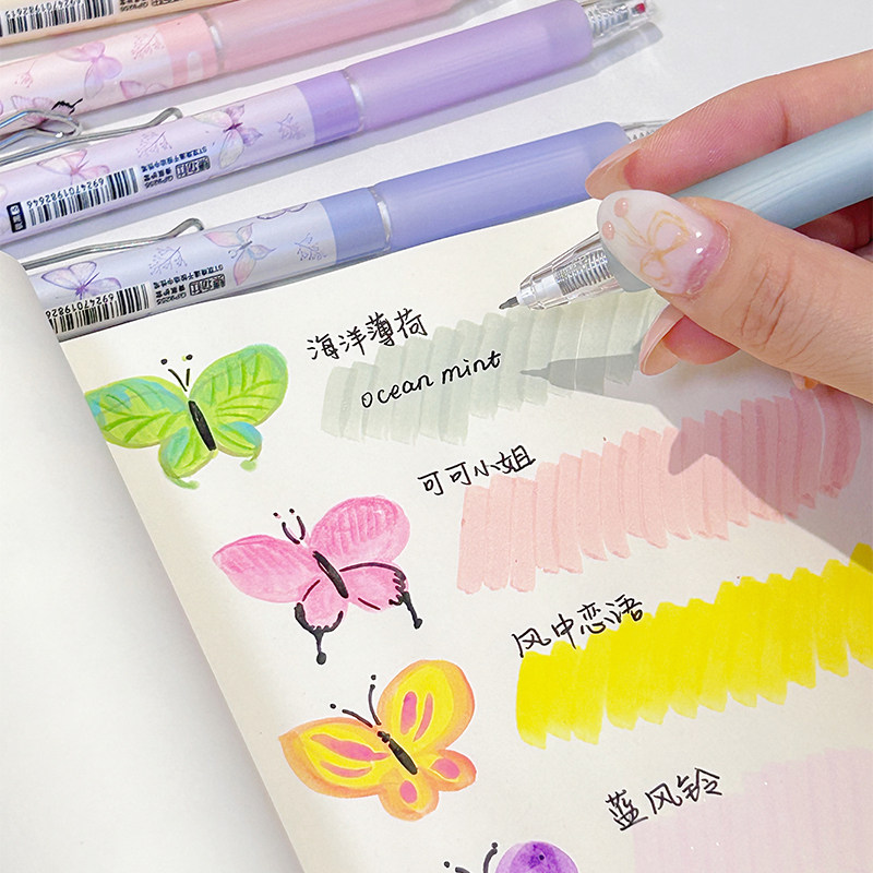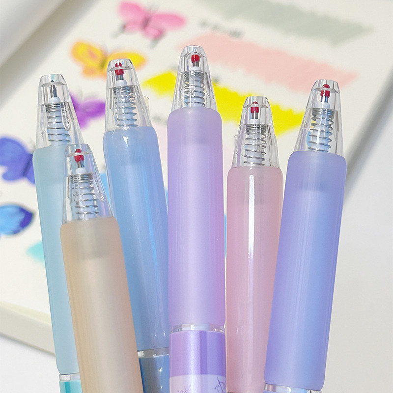 集物社新款香味按动中性笔香水味黑色ST双珠笔头春之茶香香氛护套按动笔速干刷题笔防水黑笔学生用带香味的笔