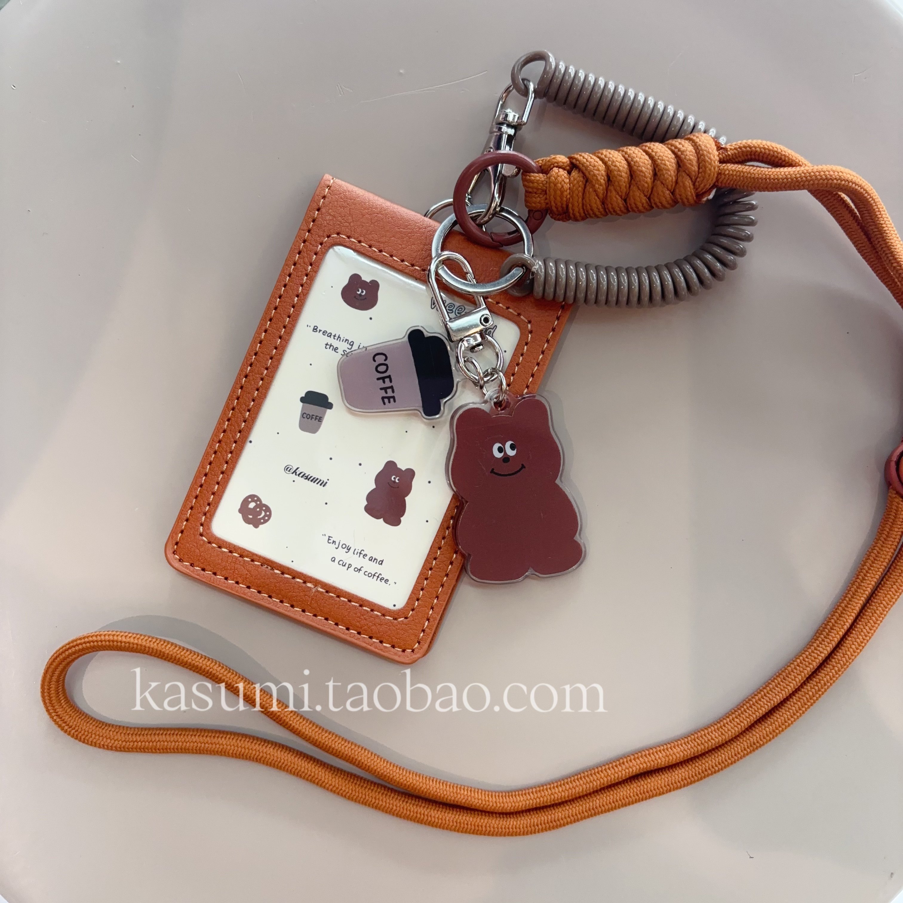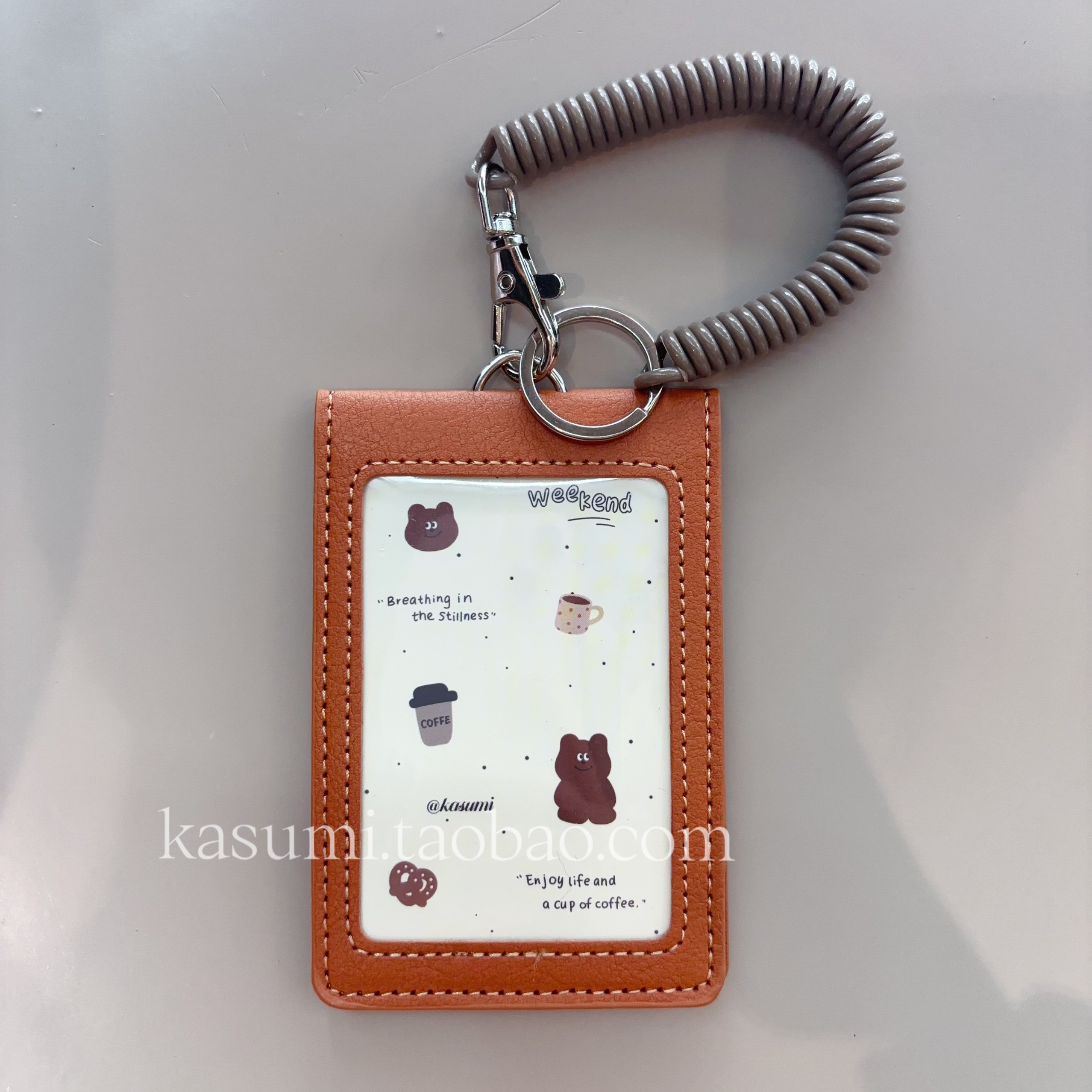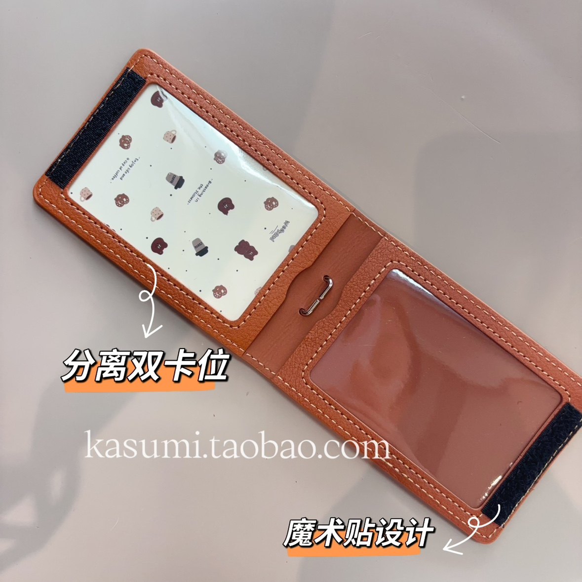 原创小熊周末可爱挂件一体皮两卡位挂脖防干扰公交门禁证件工牌套