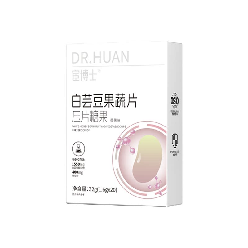 宦博士白芸豆果蔬餐前片32g/盒山竹秋葵莓果味压片糖果独立小包装