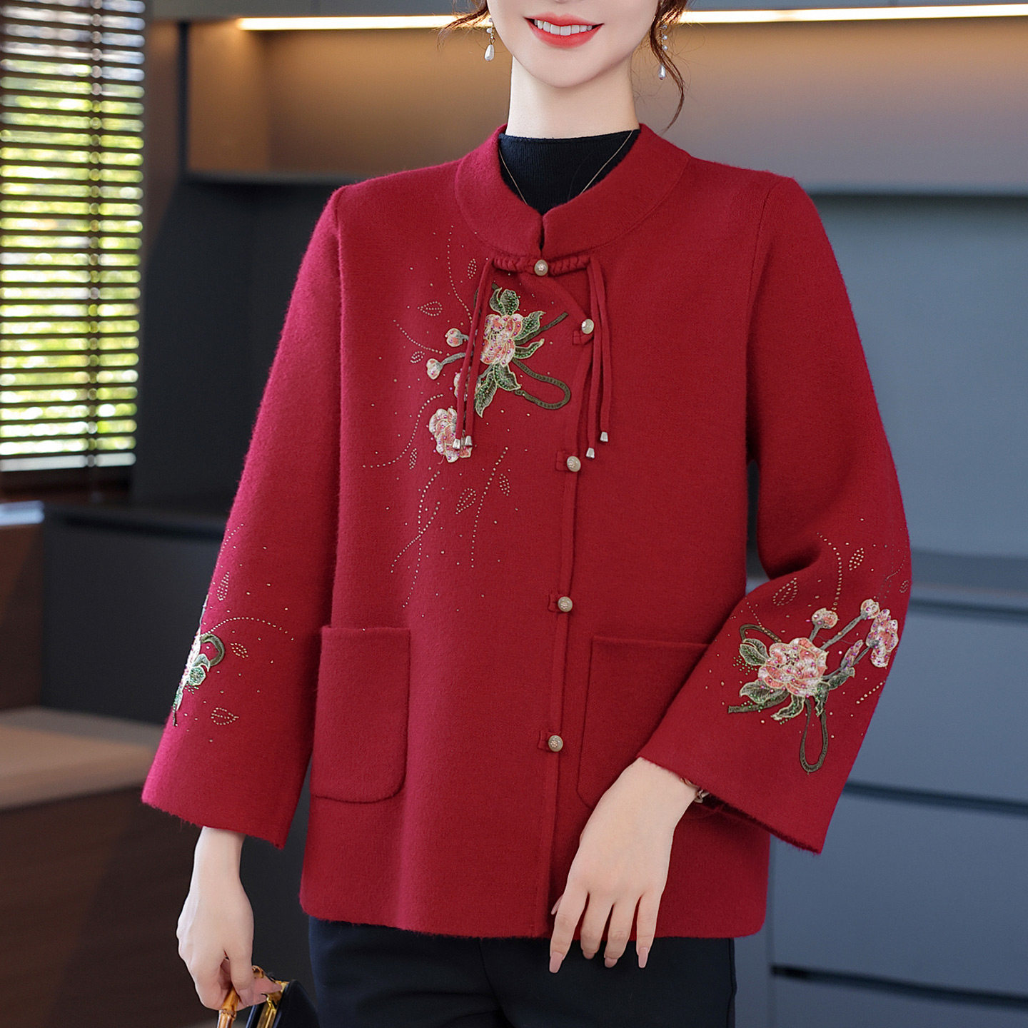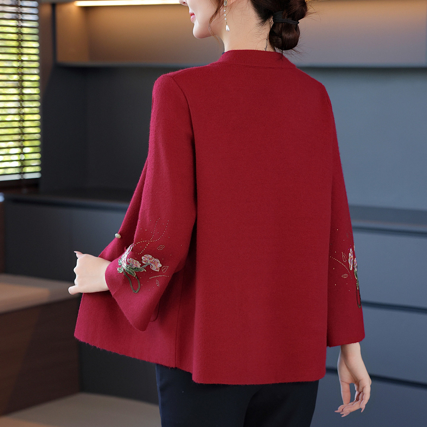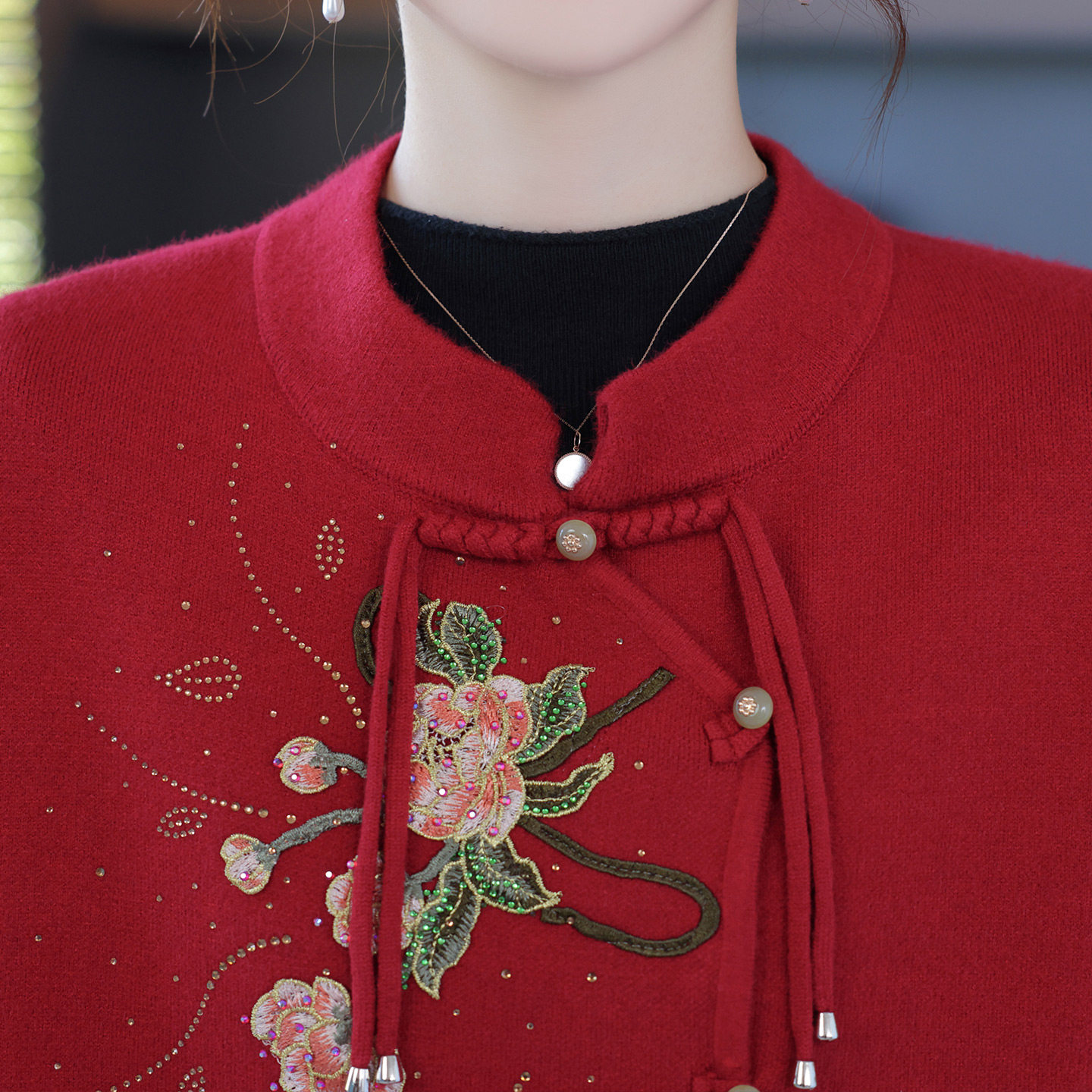 恒源祥民族风针织开衫刺绣两件套装夹克国风妈妈装秋冬中老年女装